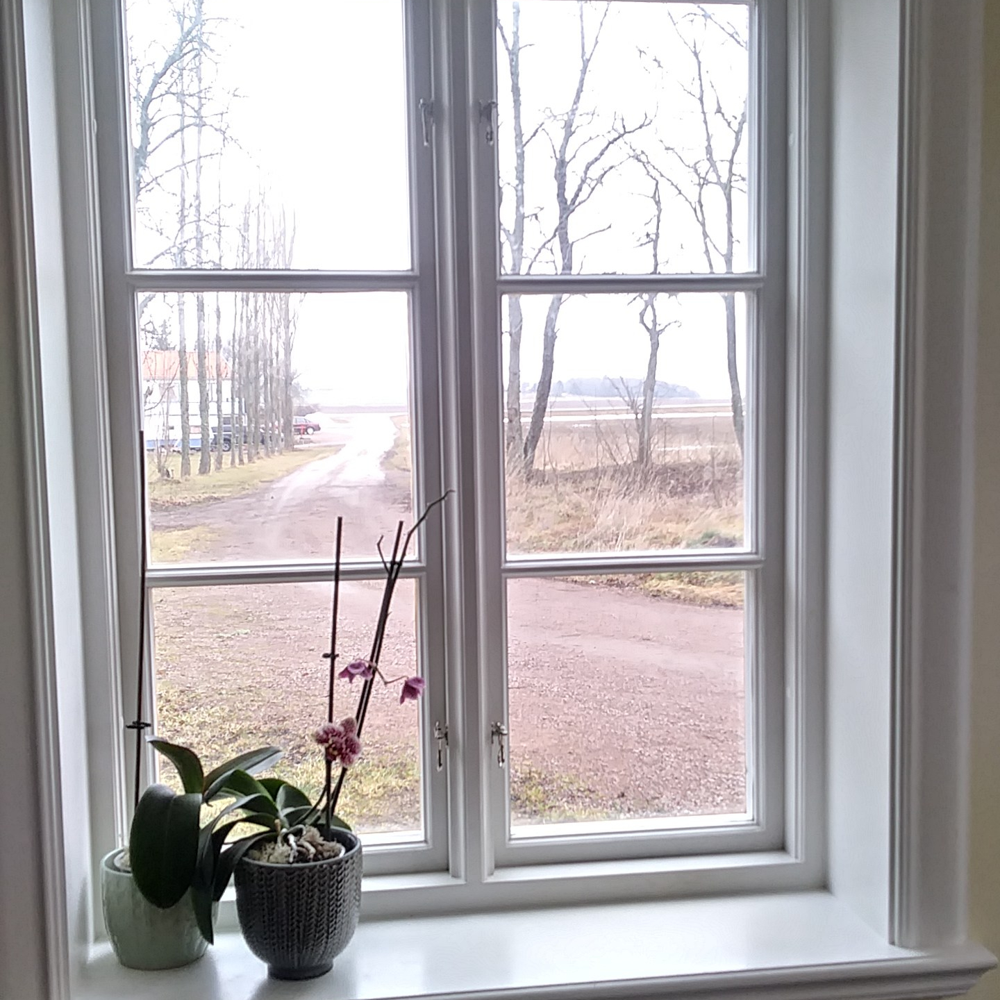 fönster i kärnfuru målade med linoljefärg foder