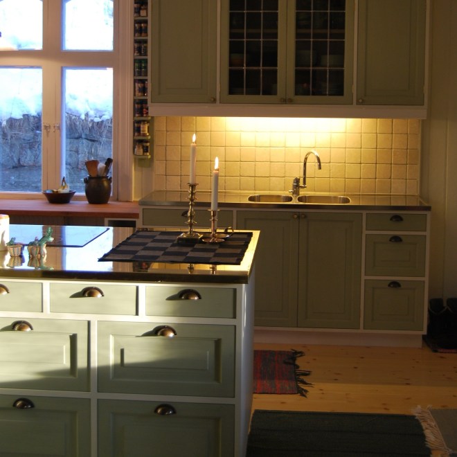 Previous ImageNext Image kök i 1800-tals villa Kök i massiv trä Sinkade lådor i al Målat med äggoljetempera